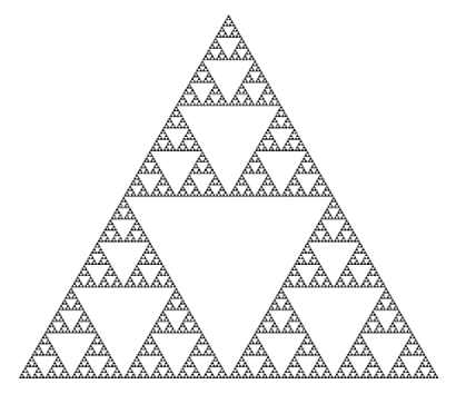 分形是我在数学教材里看到的一个概念,一个图形的局部与它的整体自相似,代表的图形是谢尔宾斯基三角形。